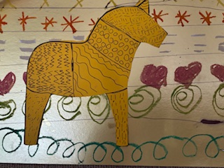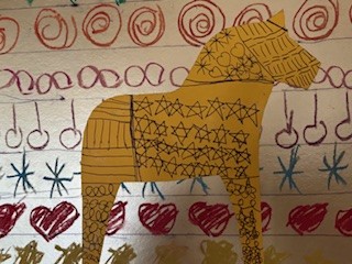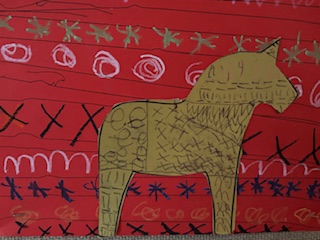 Next, they explored how artists use line and repetition to create patterns. The children drew Horses to celebrate Chinese New Year, with 2026 being the year of the horse, and decorated their red yellow and gold backgrounds using repeating lines and shapes. Using ballpoint pens allowed them to practise careful drawing and develop confidence in their mark-making.