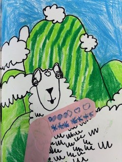 One of the highlights of the unit was creating a fun photobombing llama. First, the pupils drew the mountains of Machu Picchu, using oil pastels to blend light and dark greens and give the mountains a 3D effect. As you can see from the llamas below, the children all did a fantastic job!