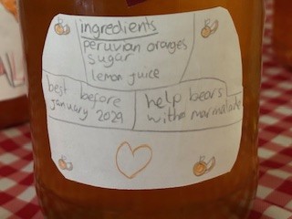 Paddington is famous for his love of marmalade sandwiches, so the children looked carefully at the features of real jam and marmalade jar labels. Each pupil designed their own marmalade label, thinking carefully about the colours and images they wanted to include. Their final labels were bright, creative and full of personality!